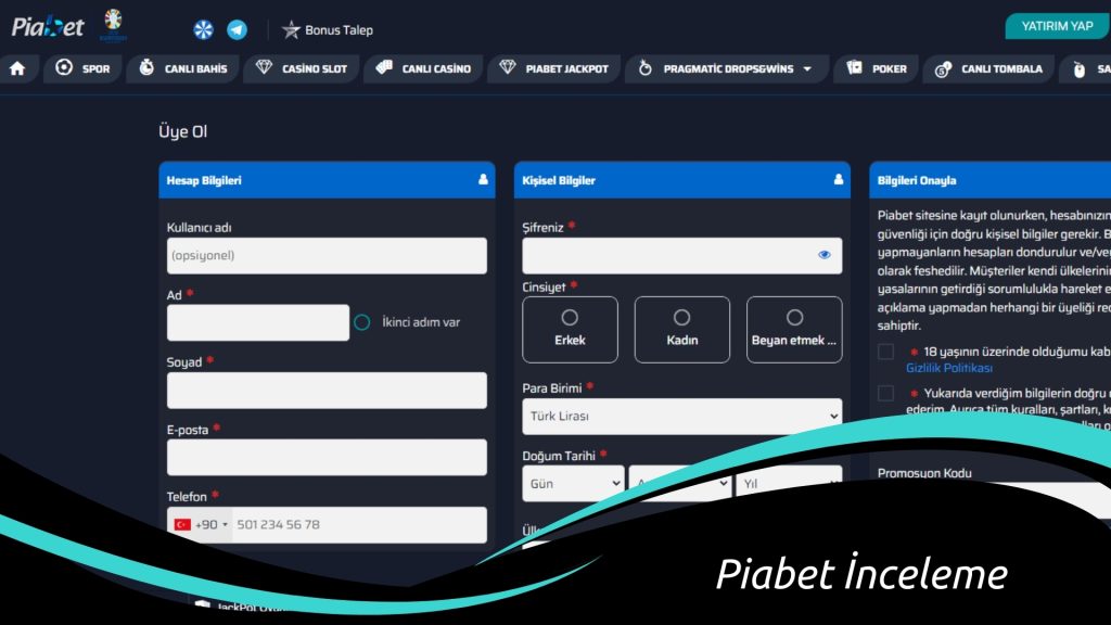 Piabet Deneme Bonusu ve SMS Doğrulama Bonusu